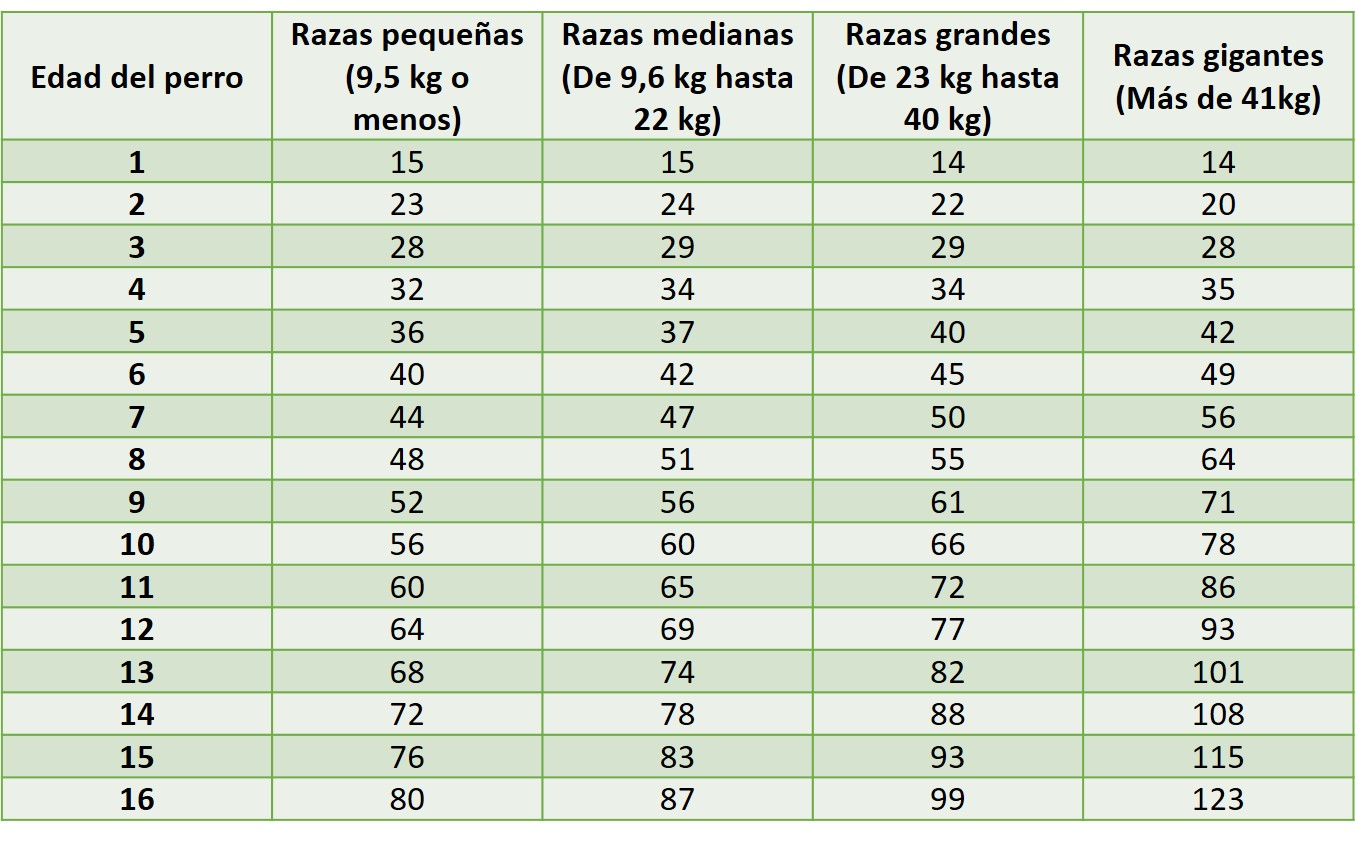 Por todo lo anterior, resulta complicado calcular la equivalencia en “años humanos”. Pero como nada es imposible, con la siguiente tabla podrás calcular de forma aproximada la edad de tu perro: